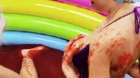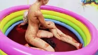 Lesbian Lovers in Erotic Red Bath Rubdown Blonde Brunette Lush Delights in Fling
